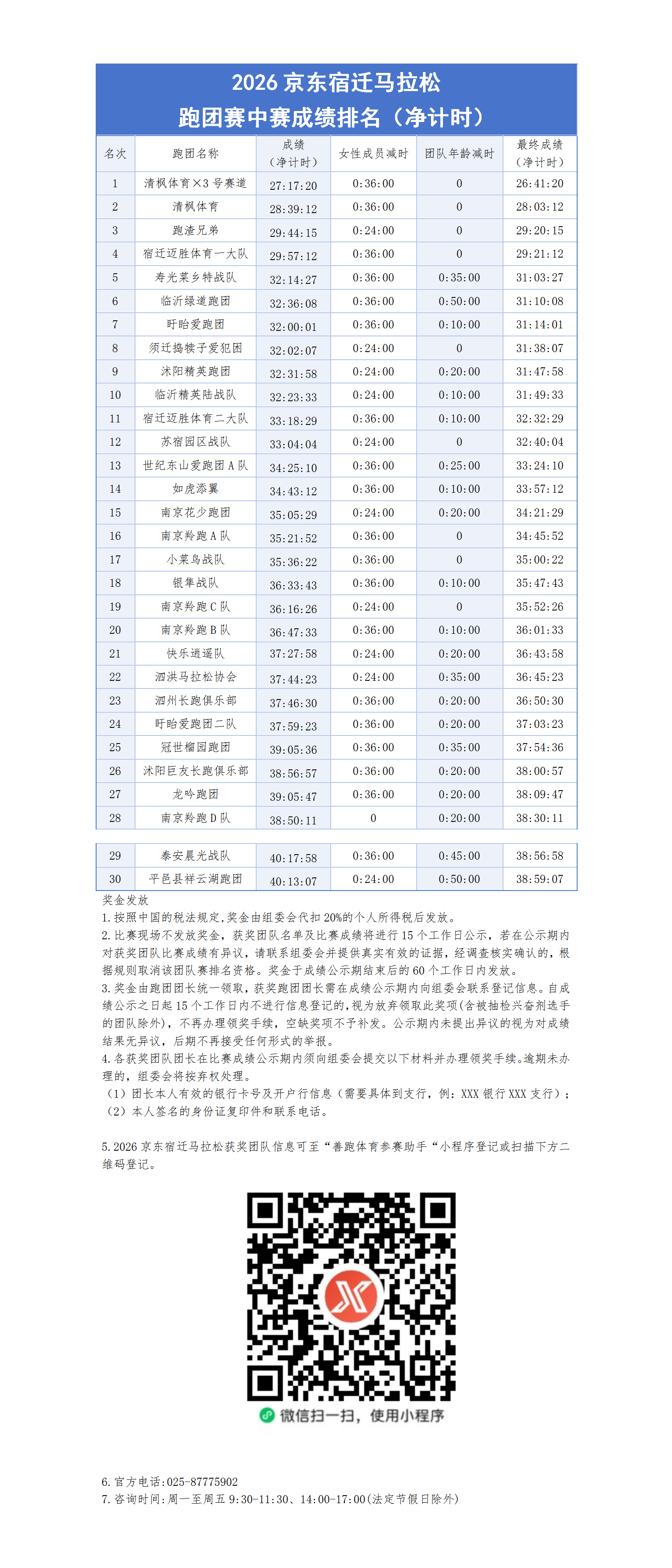 2026京东宿迁马拉松跑团赛中赛成绩排名公示